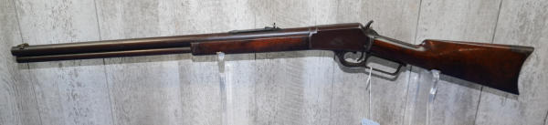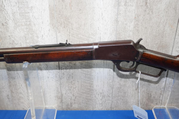 24" Rnd. BBL w/full length receiver tube; action catches; metal crescent butt plate; dark brown patina; has scratches on receiver around the screw heads; mfg. 1889-1895; No transfer needed; USA: SN#49333