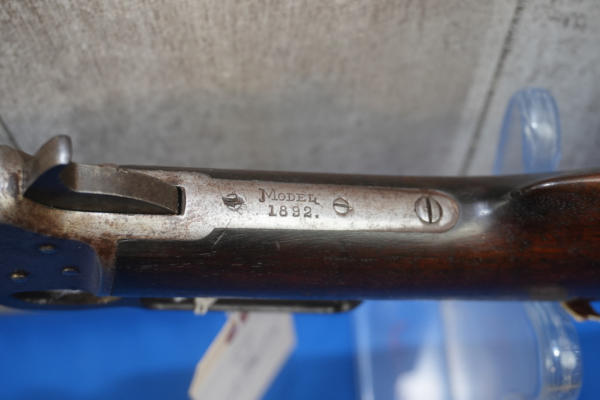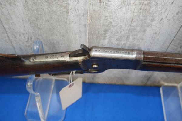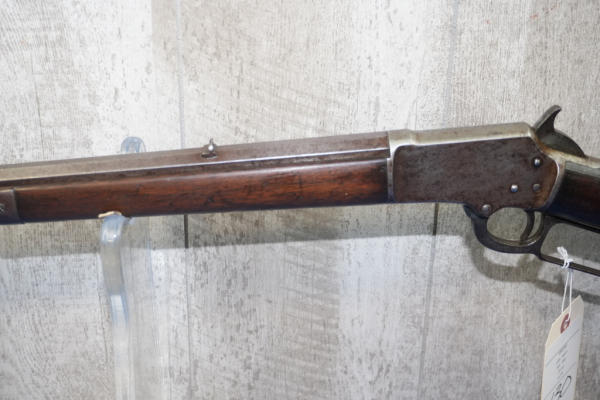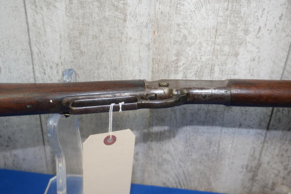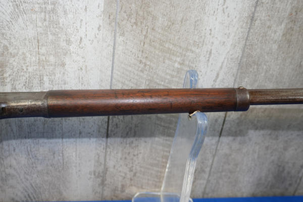 24" Oct. BBL w/full length receiver tube; action is stiff; plastic butt plate has a chip in the bottom; small crack in forearm; no bluing; USA: SN#156330