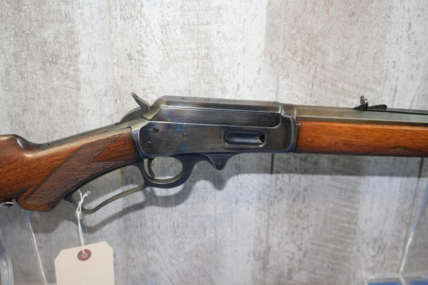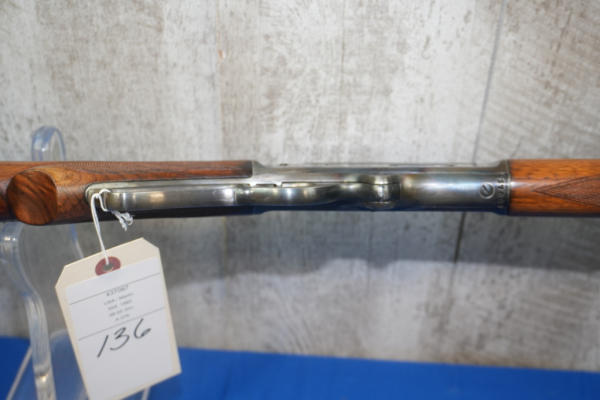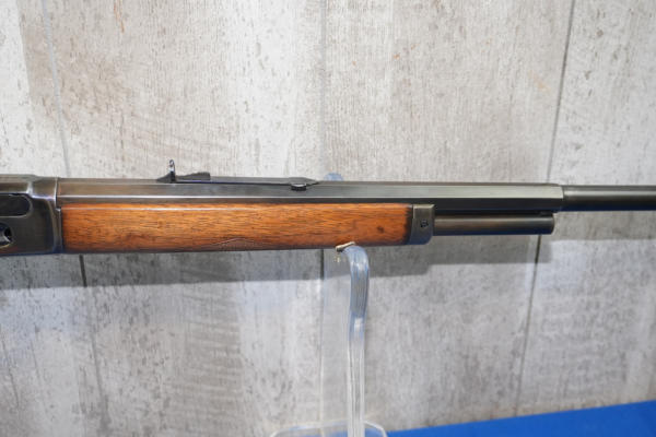 26" Oct. to Rnd. BBL; half length receiver tube; checkered wood stock; plastic butt plate; smooth action; decent bluing; overall great looking gun!; USA; SN#437097