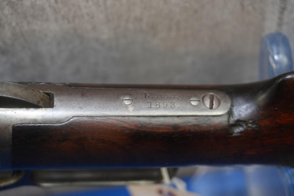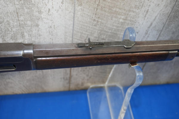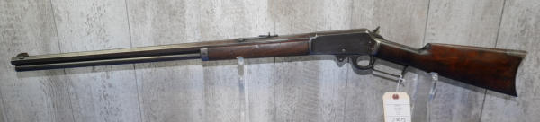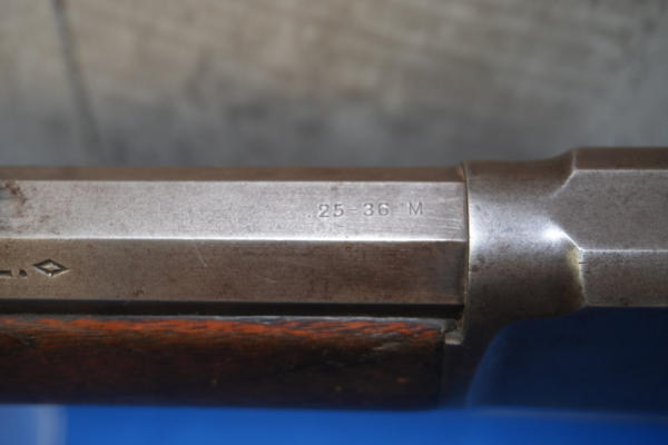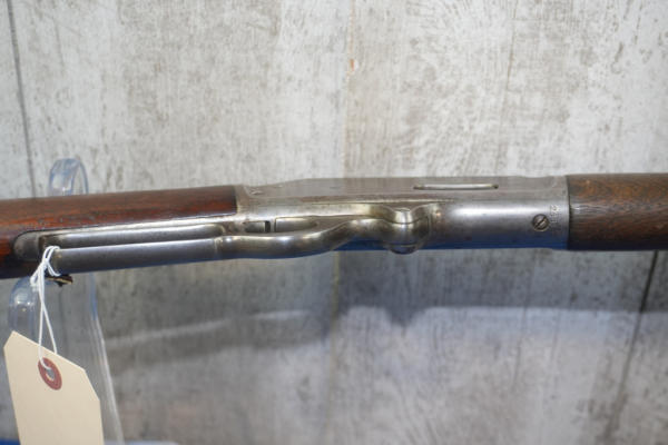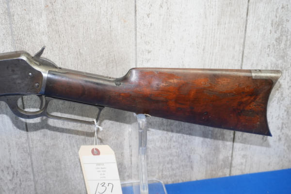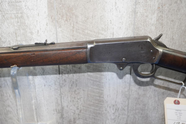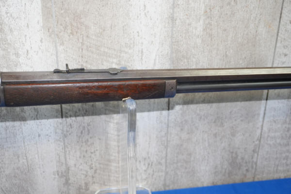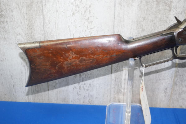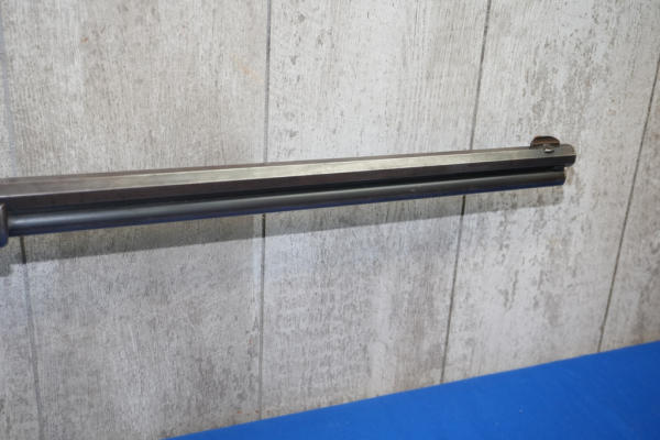 26" Oct. BBL; action is tight; metal crescent butt plate; piece of stock missing by top tang; bluing is thin; finish to wood is worn; USA: SN#258703
