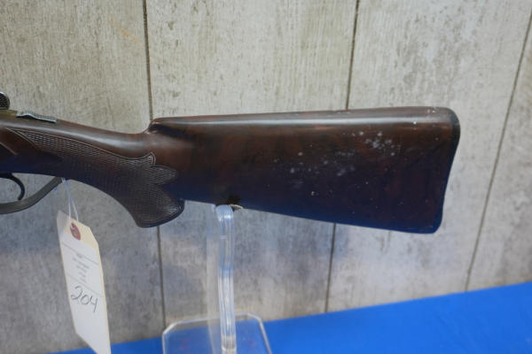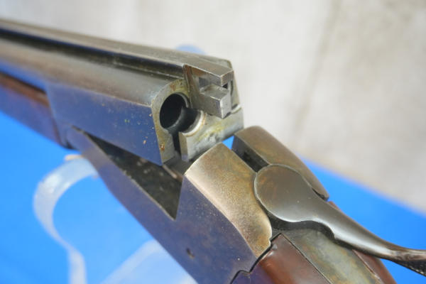 26" BBLs; easy break action; brown Tenite stock; plastic butt plate; dark brown patina on receiver; two triggers; 3"; both FC; USA; No SN#