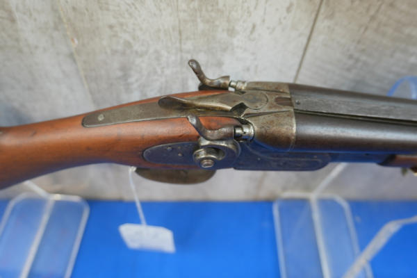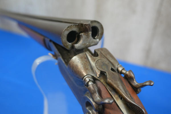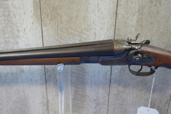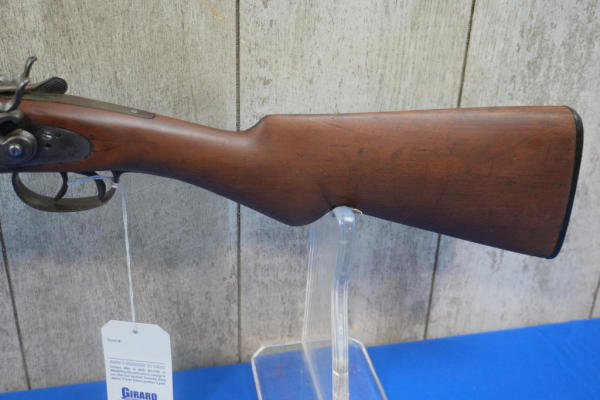 26" BBLs; easy break action; wood stock has crack on right side behind receiver; plastic butt plate; dark barrels; two triggers; both mechs work; both MC; No Transfer needed; USA; SN#418378