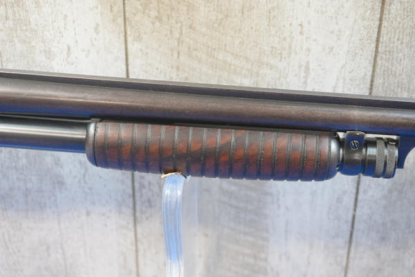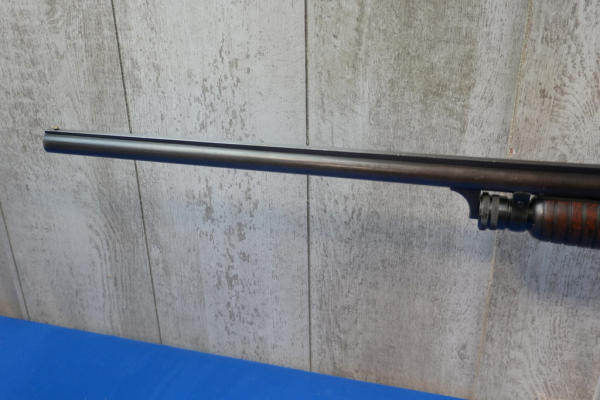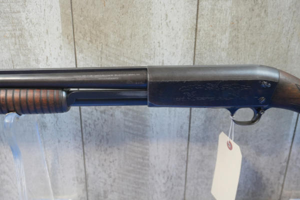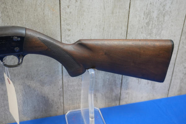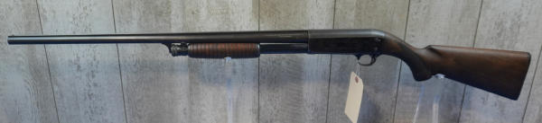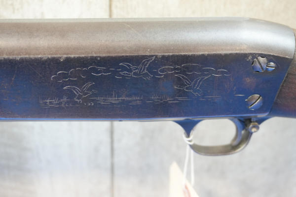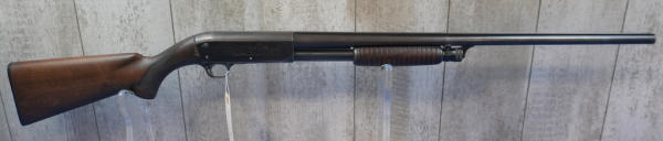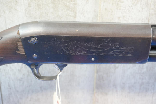 26" Solid Rib BBL; smooth action; has some damage to stock behind receiver; plastic butt plate; factory engraved receiver or dog & Bird scenes; 2.75"; IC; USA; SN#77390