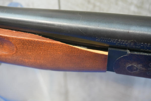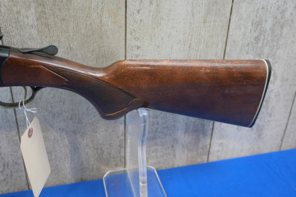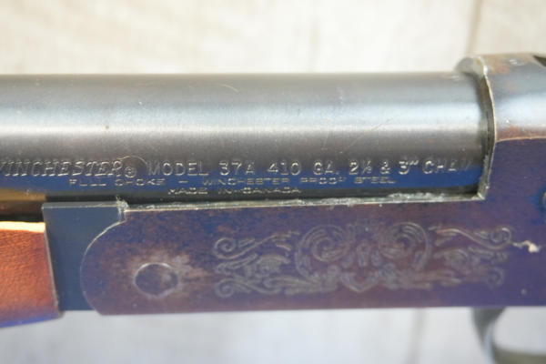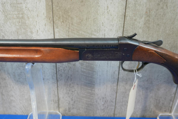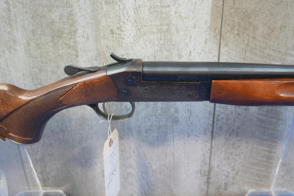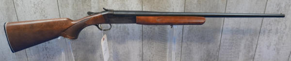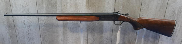 26" BBL; easy break action; plastic butt plate; nice checkered wood stock; brown patina receiver w/scroll engraving; gold trigger; 2.5" & 3"; FC; Canada; SN#C793754