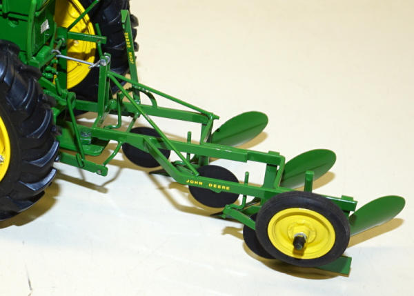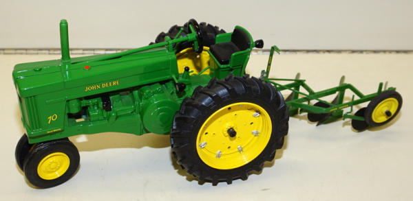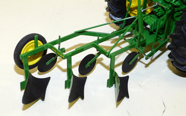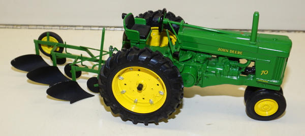 Ertl Tractor lightly customized with a nice 3pt added and some highlights on the rims; the plow is all scratch built from metal and very fine detail, looks great, nice set up, comes with the original wood shipping crate too