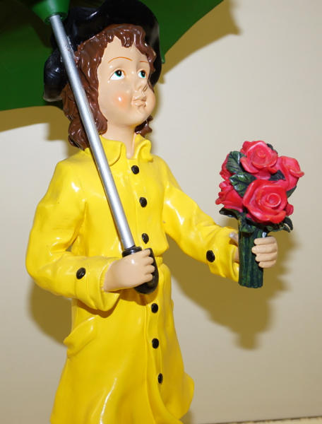 24" tall, nice original, has been displayed, no box; umbrella does come off, but prefer not to ship, these are fragile, Resin Cast