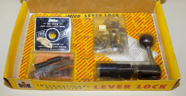 Contents ae mint, box is nice with some general wear, as the box liner, Lever lock is still sealed in the package, neat graphics on the outside showing different IH trucks