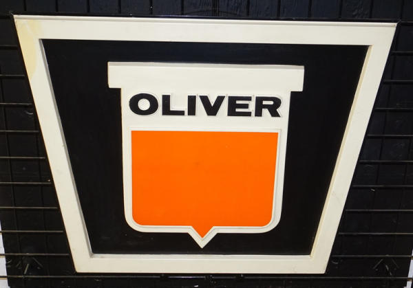 36"x29", lightweight plastic with masonite back and aluminum frame, some discoloration, but no major damage or cracks, an Oliver sign we have never seen or sold before, can't be many of these that survived due to the plastic construction
