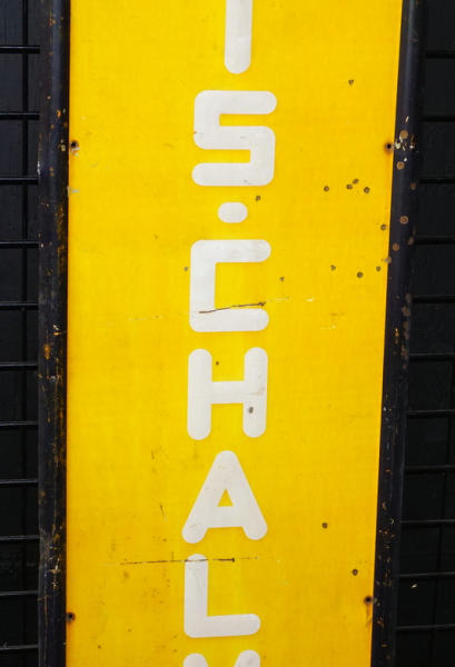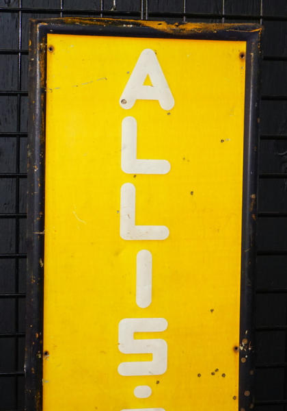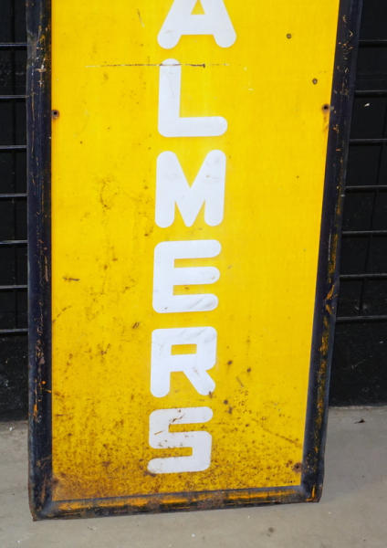 6' tall, 18" wide, some fading and general wear, a little rust stains on the bottom and some patina, rates 7 condition