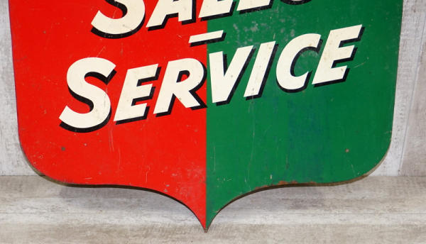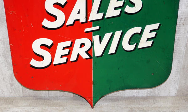 46"x45", good color, some scuffs and scrapes from use and storage, one side rates 8.25, other side rates 8 condition with a few more scuffs, not perfect, but still a nice sign