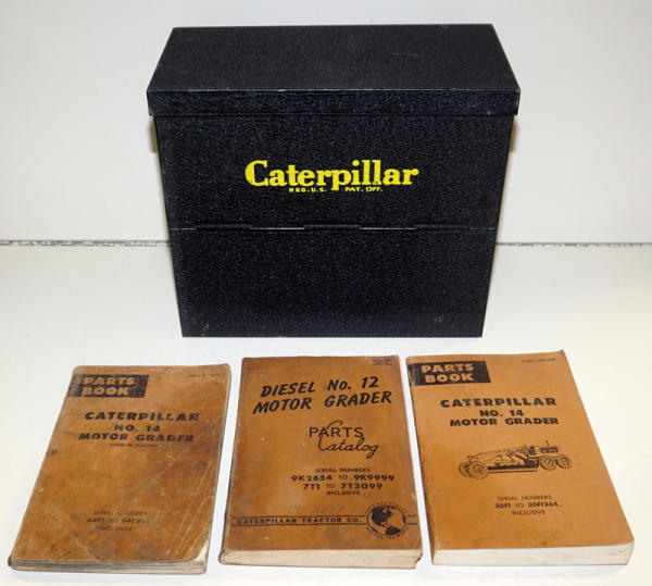 10"x12"x6", really clean and nice original file box, comes with a few #12 & #14 Motor Grader manuals that are used, all to go