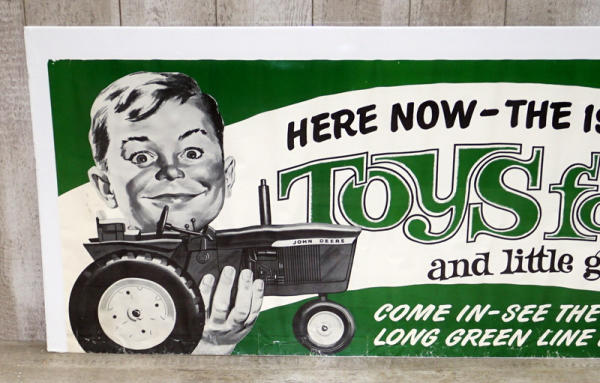 24"x71", super color, a little wrinkled on the bottom edge from use, but overall a fantastic sign, has been shrink wrapped to foam board to display, easily can be taken out and rolled for shipping if needed