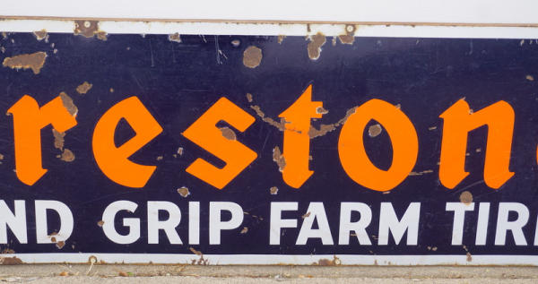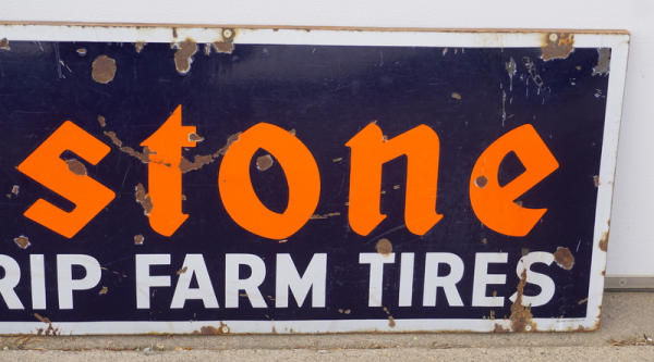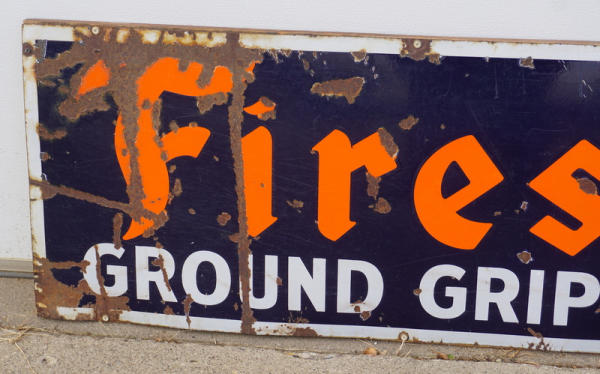21"x6', some large chips and wear, good color, has a wood backing on it, good patina sign
