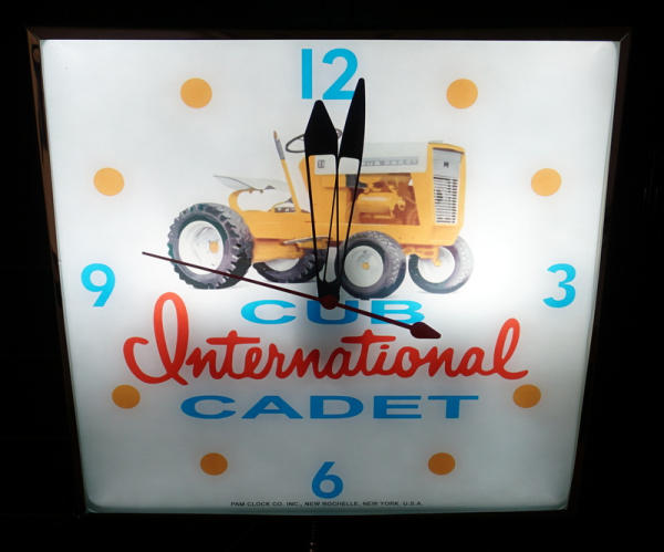 15"x15", lights up and works good, looks like an old clock, but it is 100% brand new