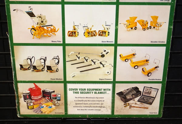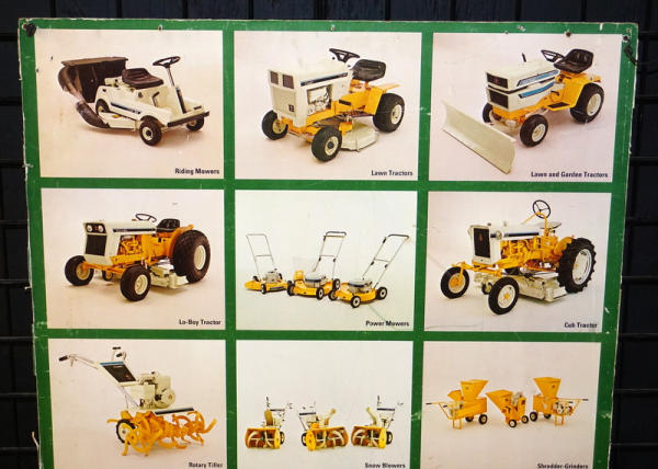40"x28", used with some general wear and a few extra nail holes, different image on each side, not perfect, but a great piece for the Cub Cadet collector