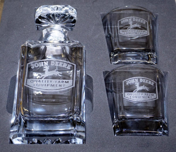 Neat set, custom made by a local artist, Decanters & glasses are etched, wood display box is laser engraved too, looks great, great Christmas present!