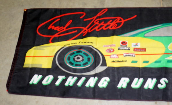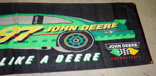 33" tall, 10' long, looks like it was used, colors are slightly faded, light cloth material
