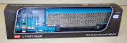 #32 - DCP Semi--Turquoise/White Pete 389 63" Flattop Sleeper w/ Wilson Spread-Axle Livestock Trailer