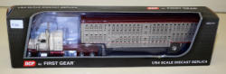 #34 - DCP Semi--Maroon/Cream Pete 389 63" Flattop Sleeper w/ Wilson Livestock Spread-Axle Trailer