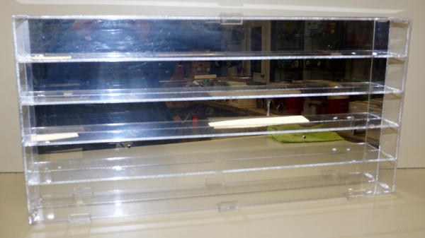 32"x16"x3", used and good condition, but has some scuffs, looks like it will hold 10 or so 1/64th semi trucks out of the box; no shipping, pickup only