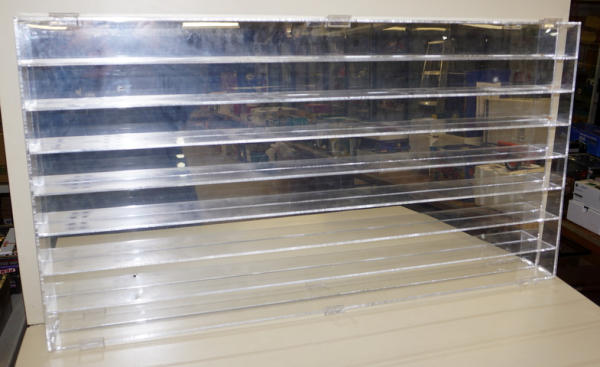 46"x24"x3", plastic with mirrored back, used so it has some scuffs, but good condition; no shipping