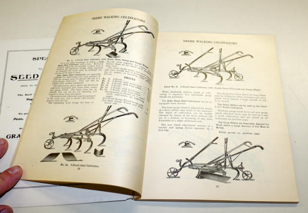 128 pages, looks to be early 1920's or late teens, cover is damaged and about loose from the piece, over half the equipment inside is JD