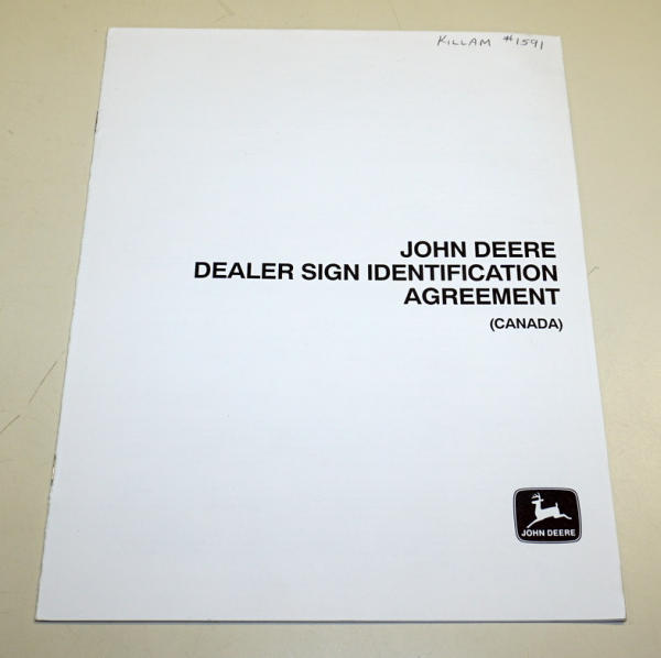 8 pages, used, filled out to a dealer in Killam, Alberta, Canada; this is the contract between JD & the dealer on who pays for the sign, how it's displayed, and how it's disposed of if the dealership closes or changes