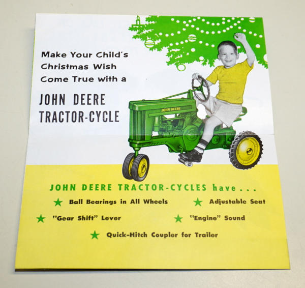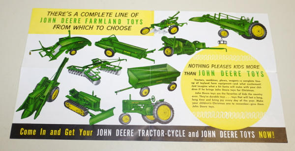 C399-55-10, small pocket size, 4-panel foldout, shows the Large 60 pedal, plus the 1/16th 60, 40 crawler, 12A combine, picker, wagon, Long Lever Spreader & drag disc! Clean and nice, another rare one we have never offered!