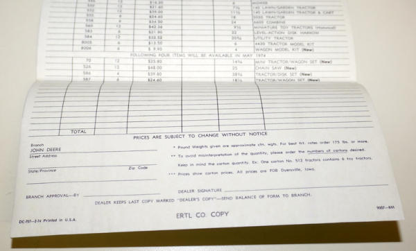 dated 2-74, includes 6600 combines, 5020s, Chainsaw and more, all mint, all to go