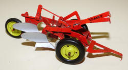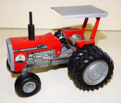 1950's plastic tractor, no #'s on the hood version; mint original toy, rear rim wants to come off the axle, not damaged, I think just shrank a little with age; clean and nice original box with great graphics, some edge wear, overall box rates 8.5 condition; one of the best graphic vintage boxes ever produced!