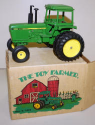 Tractor has short filters, so considered a 3020, but comes with the 3010 box. Toy has 3pt, 3 good levers, and all metal, narrow rims; toy is near mint original; box has been shrink wrapped to protect. Looks like it might be missing an outside flap, an inside flap on the other end and some general wear, box rates 7 condition