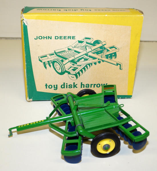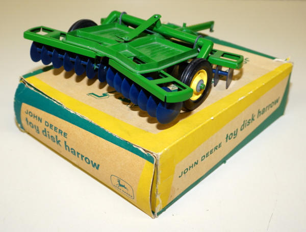 Near mint original toy, only some paint chips on the hitch; box is square, has all the flaps, some edge wear and discoloration, box rates 8.25 condition