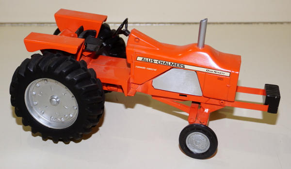 Old smooth grill Ertl casting, customized with the raised hood, side shields, plastic rims painted silver, mild "old school" custom puller
