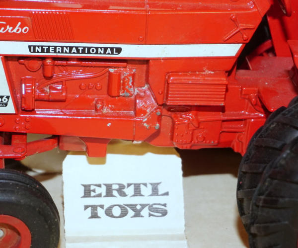 Toy has some paint chips on the canopy and some paint corrosion/chipping on the engine, box has some general wear; this was a tractor that is not marked Toy Farmer, but was sold by them
