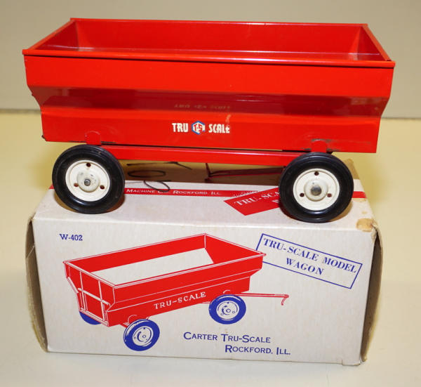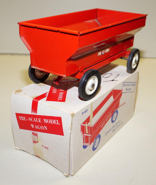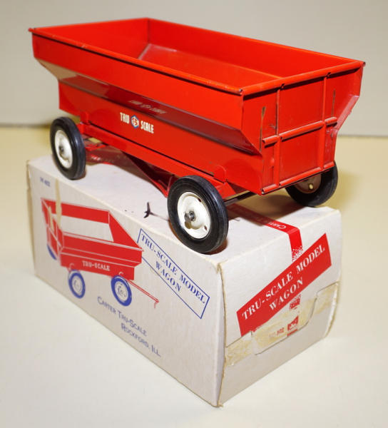 Toy is 97% with 2 corrosion spots in the floor of wagon; box is complete, some writing and wear, box rates 8 condition