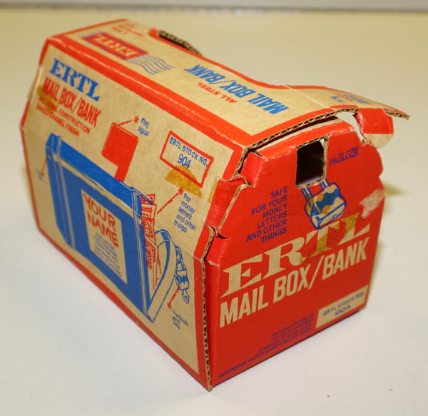 metal flag, toy is mint; box has some discoloration and tape burn/stains on the flaps, box rates 8 condition, hard to find