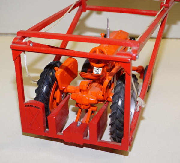 older SpecCast Tractor, Scale Models Farmhand loader added, some paint chips on the loader, but looks good