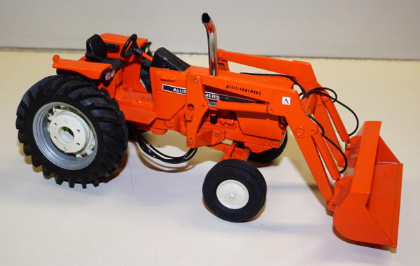 185 casting with 3pt added, wheel weights & chrome stack, Ertl Loader frame with nice lines added and plumbed in, good looking loader tractor
