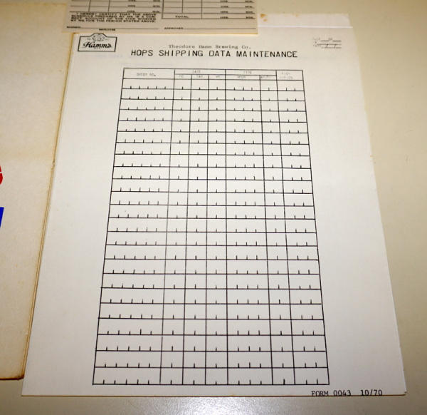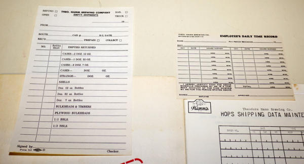 includes a "Hops shipping Data" Form, Empty Shipments, Employee Time Card & more, some normal discoloration from age, but overall nice