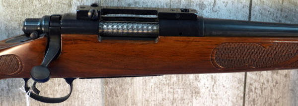 24" BBL; smooth action; hooded front sight; nice high gloss checkered wood stock; scope rail; used but very clean; plastic butt plate; USA: SN#6418498; A-280