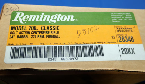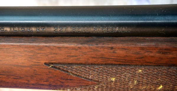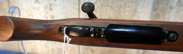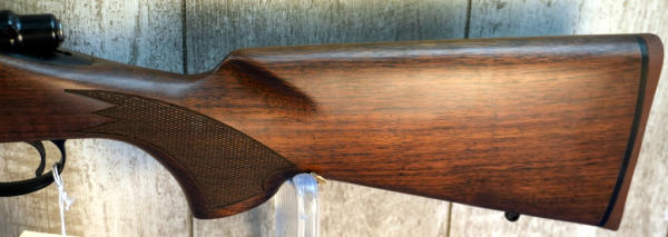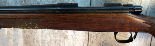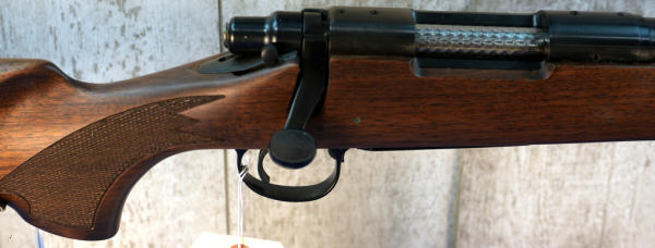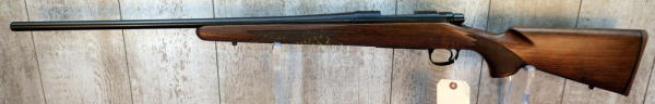 24" BBL w/no sights; smooth action; looks mint & unfired w/factory box; has yellow fuzz stuck the checkering, probably wrapped in a blanket at one time for transport; rubber recoil pad; hard caliber to find; USA; SN#G6320972; A-280