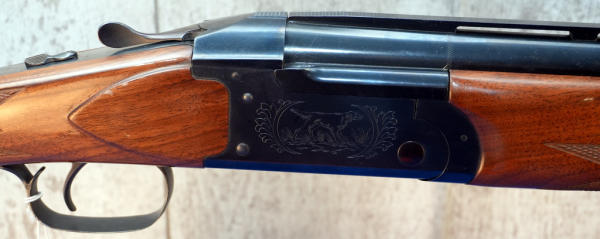 25" VR-BBLs; nice break action; high gloss wood finish w/good checkering, has s couple small marks from use; rubber recoil pad; factory engraved receiver w/Dog on both sides; single trigger; barrel select on safety; 2.75"; Both-Skeet Choke; USA; SN#0U26113; A-305