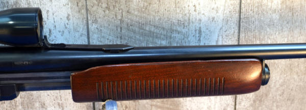22" BBL w/sights; smooth action; very nice wood; rubber recoil pad; removable magazine; Weaver K4 Scope mounted on flip-over rail; USA; SN#12028; A-226