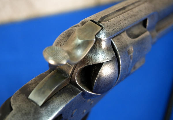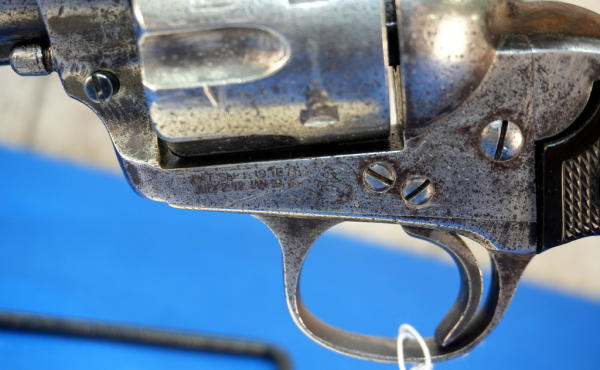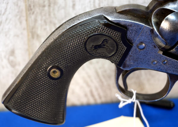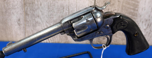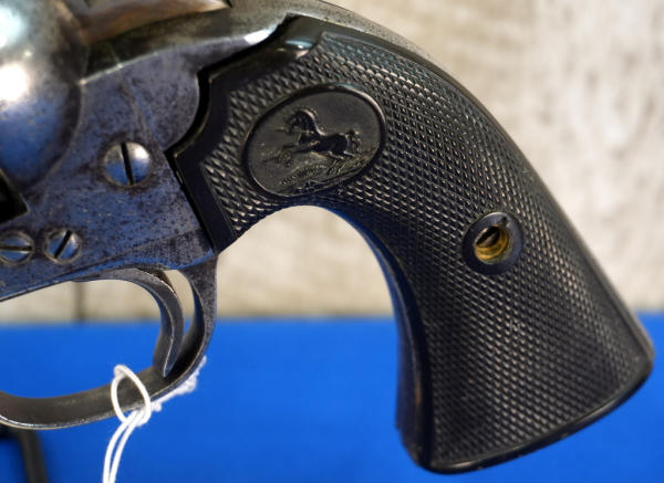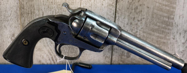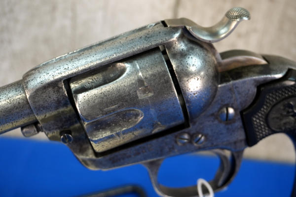 5.5" BBL; bluing is gone; original factory plastic checkered grips; low profile hammer; 6-shot fixed cylinder; has some marks, dings & minor pitting on barrel and cylinder from use; USA; SN#233223; A-255