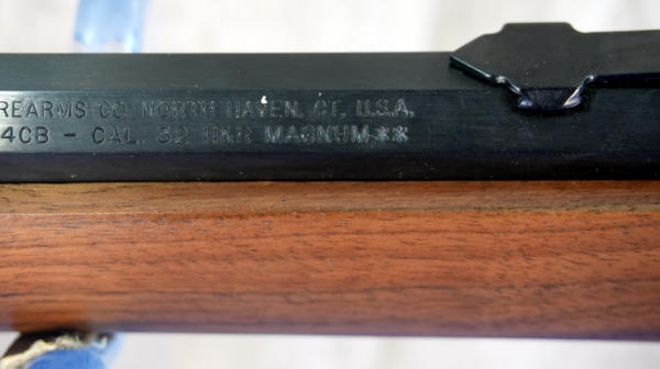 20" Oct. BBL; appears mint & unfired; original factory box; walnut English style stock; full length tubular receiver; very hard caliber to find!; USA; SN#95206608; A-267
