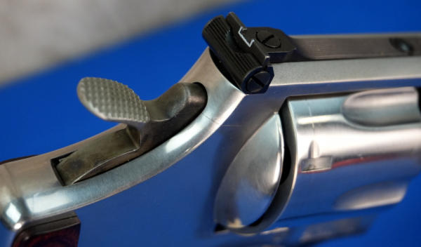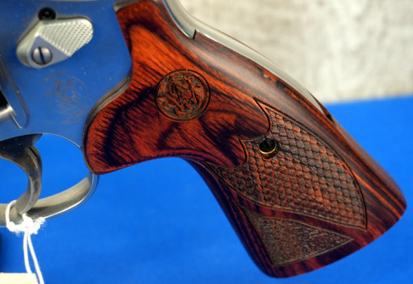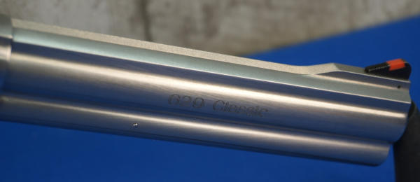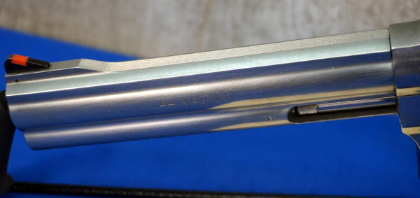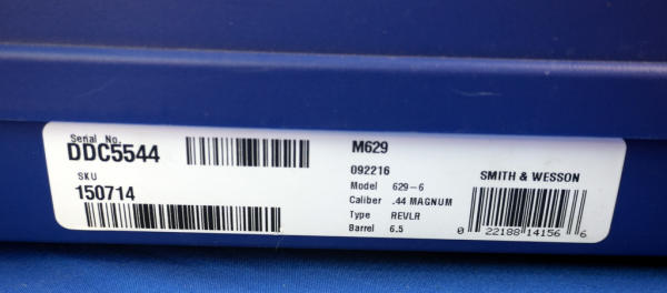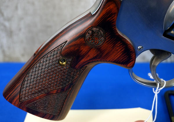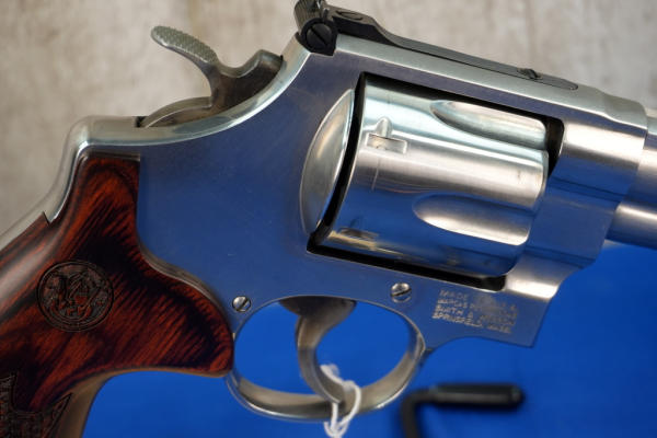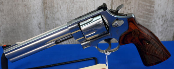 6.5" Stainless Barrel; wood grips; 6-shot swing out cylinder; used but very clean; factory hard case; red ramp front sight w/rear white outline; USA: SN#DDC5544; A-282