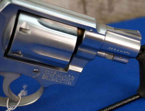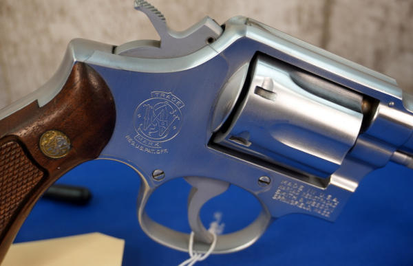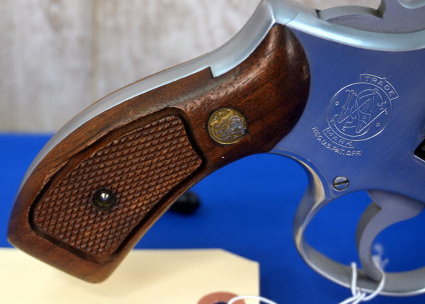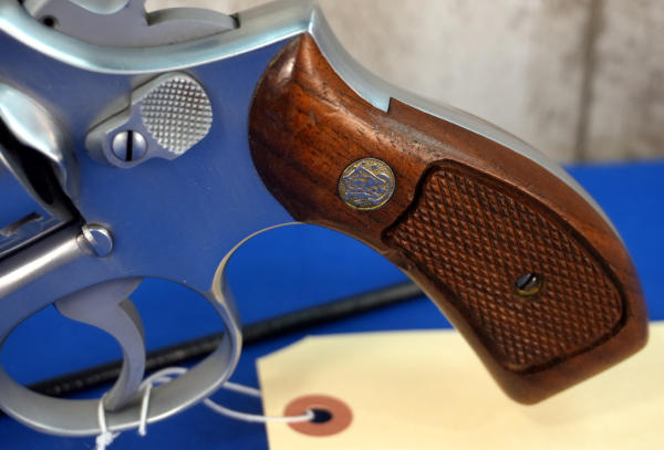 2" Stainless Barrel; 6-shot swing out cylinder; used but very clean; wood checkered grips do have a ding on both sides; come w/a factory hard case but label does not match the gun; USA: SN#D948746; A-302