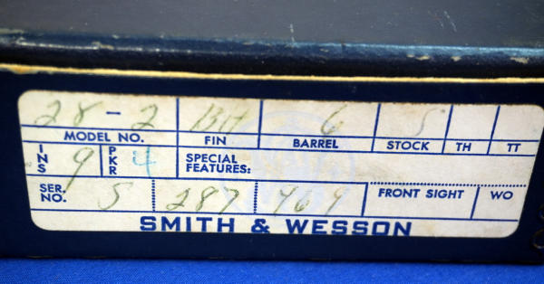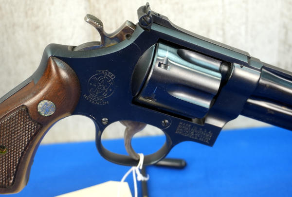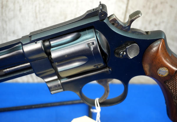 6" BBL; 6-shot swing out cylinder; fired but very clean like new condition; factory box; wood checkered grips; case hardened hammer & trigger; has a small spot of bluing loss below cylinder on left side; USA: SN#S287969; A-280