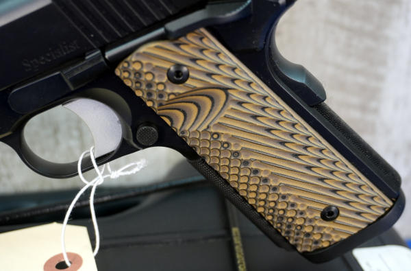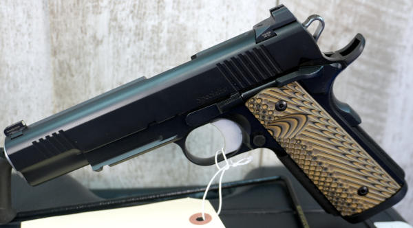 5" Stainless Barrel; looks mint & unfired w/factory hard case; composite textured grips; night sights; 2-magazines; great looking 1911!; USA: SN#2202117; A-300