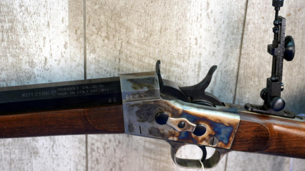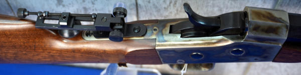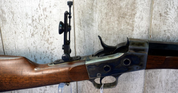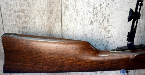 30" Oct. BBL; appears unfired; no box; metal butt plate; case hardened receiver; smooth rolling action; rear tang flip up target sight; has a couple small dings on the wood stock, probably from being handled or in the safe; Italy; SN#R012186; A-249